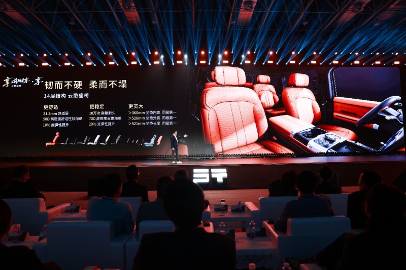 G700車內(nèi)采用云憩座椅精選Nappa真皮,搭載萊斯康18揚(yáng)聲器音響,經(jīng)過(guò)專業(yè)聲學(xué)調(diào)校,確保每個(gè)座位都是黃金VIP聽聲位,讓越野途中每一段旅程都成為享受。